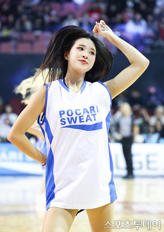 [스포츠투데이 팽현준 기자] 18일 서울 잠실실내체육관에서 열린 2025-2026 프로농구 올스타전에서 우혜준 치어리더가 응원하고 있다. 2026.01.18. [스포츠투데이 팽현준 기자 sports@stoo.com]