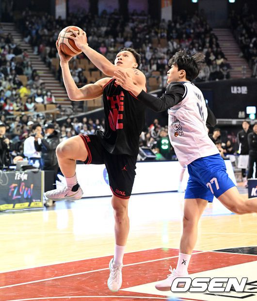 [OSEN=잠실, 이대선 기자] 18일 서울 잠실실내체육관에서 2025~2026시즌 LG전자 프로농구 올스타전이 열렸다.팬 투표와 선수단 투표, 감독 추천 선수로 이름을 올린 KBL 스타 24명이 유기상(LG)을 앞세운 '팀 브라운', 이정현(소노)이 선봉에 서는 '팀 코니'로 나뉘어 대결한다.다니엘이 1V1 콘테스트에서 공격을 시도하고 있다. 2026.01.18 /sunday@osen.co.kr |