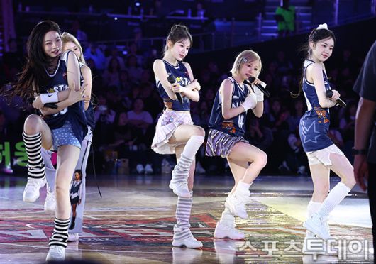 [스포츠투데이 팽현준 기자] 18일 서울 잠실실내체육관에서 열린 2025-2026 프로농구 올스타전에서 그룹 키키가 축하공연을 하고 있다. 2026.01.18. [스포츠투데이 팽현준 기자 sports@stoo.com]