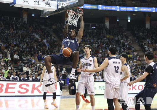 한편 경기 중 진행된 '포카리스웨트 3점슛 콘테스트'(상금 200만원)에서는 이선 알바노가 우승했고, '스포츠일러스트레이티드(SI) 덩크 콘테스트'(상금 200만원)에선 조준희(삼성)가 정상에 올랐다.