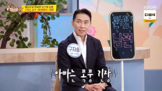 이날 구자승은 '아침마당'에 캐스팅돼 MC인 아내 앞에서 게스트로 자리했다. 구자승은 결혼 11년 차 남편으로, 일본에서 홀로 아이 둘을 양육하는 아빠로서 행복을 전했다.
