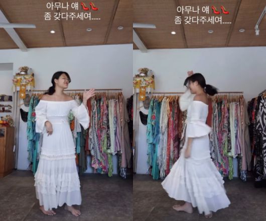공개된 영상 속에는 엄태웅-윤혜진의 하나뿐인 딸 지온 양이 화사의 'Good Goodbye'를 추고 있는 모습이 담겨 있다. 최근 엄태웅의 가족은 발리로 해외 여행을 떠났고, 지온 양은 한 가게에서 맨발로 화사의 'Good Goodbye' 안무를 그대로 선보여 눈길을 끌었다. 가수이자 배우 고모 엄정화의 DNA를 물려받은 듯한 춤사위가 돋보였고, 이에 윤혜진은 시그니처 소품인 빨간 하이힐을 언급하며 "아무나 얘한테 좀 갖다주세요"라며 못말리는 끼를 인증하기도 했다.