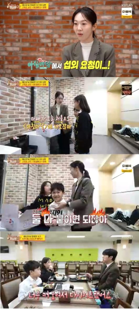 김진웅은 아이들을 데리고 구내식당으로 갔다. 본아는 맨날 구내식당에 왔었다면서 집밥이 구내식당 밥이었다고 했다.