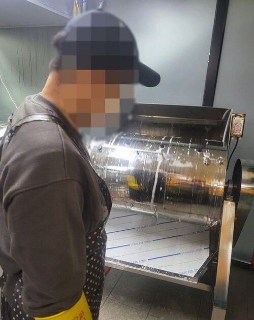필자가 세척기로 숟가락, 젓가락을 위생적으로 세척하고 있다. 필자 제공 |
