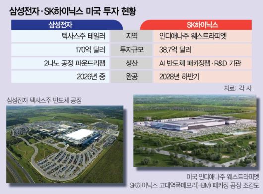현재 삼성전자와 SK하이닉스는 미국에 대규모 투자를 진행 중이다. 삼성전자는 텍사스주 테일러에 170억 달러를 투자해 2㎚(나노미터·10억분의 1m) 공정 파운드리(반도체 위탁 생산) 공장(팹)을 짓고 있으며 올해 완공 예정이다. SK하이닉스는 인디애나주 웨스트라피엣에 38억 7000만 달러를 들여 인공지능(AI) 반도체 패키징 팹과 연구개발(R&D) 기관을 2028년 하반기까지 구축할 계획이다.