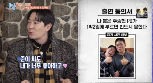 [OSEN=김수형 기자]'붐·김재원, ‘1박 2일’서 도깨비 패러디 폭주한 가운데, 붐이 출연·김재원, ‘1박 2일’서 도깨비 패러디 폭주한 가운데, 붐이 올데이프로젝트 이전의 혼성그룹이라 밝혔다.