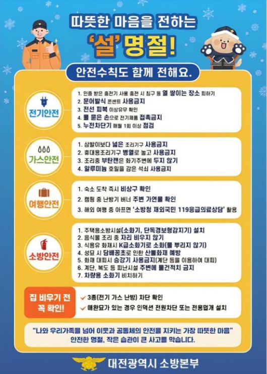 대전소방본부가 다음 달 설 명절을 앞두고 19일부터 2월 15일까지 '설 명절 대비 화재예방대책'을 추진한다.