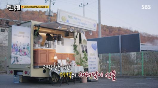 이날 유재석은 새해를 기념해 ‘런닝맨’ 제작진에 커피차를 선물했다. 지석진은 “네가 한 거야?”라고 물었고, 유재석은 “아니? SBS의 얼굴이 했어”라고 말했다.