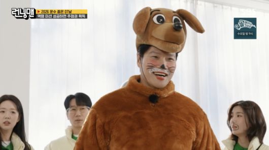 돌아온 김종국의 얼굴에는 강아지 분장이 그려져있었다. 행운템 추첨에 실패해 강아지 분장을 받은 뒤 멤버 2명에 예쁨을 받아야 로또 얼굴볼 획득이 가능했던 것. 김종국은 얼굴볼 획득에 성공한 뒤 문제 풀이에 나섰고, 이때 같은팀 권은비는 김종국에 “근데 좀 지능이 강아지로 돼가지고 되려나?”라고 의심해 웃음을 자아냈다.