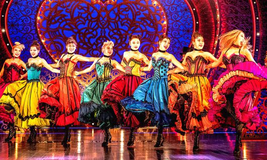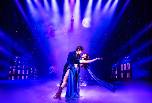 진홍빛 무대에서 펼쳐지는 춤과 노래의 향연은 화려하고 관능이 넘친다. 캉캉과 댄스 넘버에서는 채도가 높은 빨강·파랑 조명과 스트로브가 박동처럼 튀어 오르며 무대의 에너지를 폭발시킨다. 화려한 무대를 벗어나 창 너머로 에펠탑이 스치는 공간과 건물 옥상에선 파리 야경과 별이 빛나는 밤하늘이 어우러진다. ‘물랑루즈!’는 이처럼 화려하고 아름다운 무대에서 사랑과 예술을 피워 올리는 뮤지컬이다.
