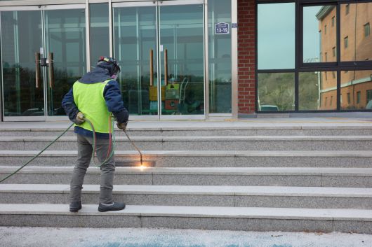 화강암 계단 표면 화염으로 깎아내 마찰력 복원 ‘넘어짐 예방’