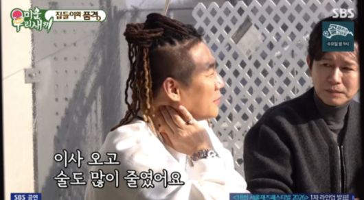 김민종은 "가끔 청담동에서 젖어있는 모습을 봤다"라고 말했고, 윤민수는 "그때가 제일 힘들었을 때다. 여기 와서 그나마 많이 줄었다"라고 말했다.