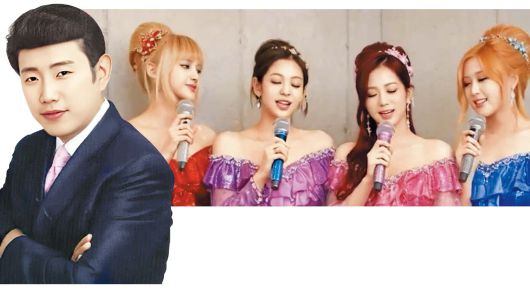 박재범의 ‘몸매’ 트로트 버전 영상의 썸네일(왼쪽). 설운도 스타일 헤어와 정장 차림에 박재범 얼굴을 합성했다. 오른쪽은 블랙핑크의 ‘킬 디스 러브’ 트로트 버전을 부르는 AI 생성 영상 이미지./유튜브 채널 뽕미더머니·믹스파이 |