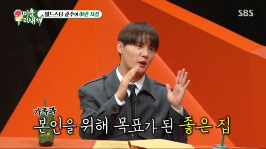또 김준수는 "부엌도 방이 있는 부엌이 아니었다. 빌라인데 밖에 나가는 듯한 시골 느낌의 부엌이었다. 나중에 성공해서 좋은 집에 살아야겠다는 목표가 생겼다"고 전해 감동을 자아냈다.