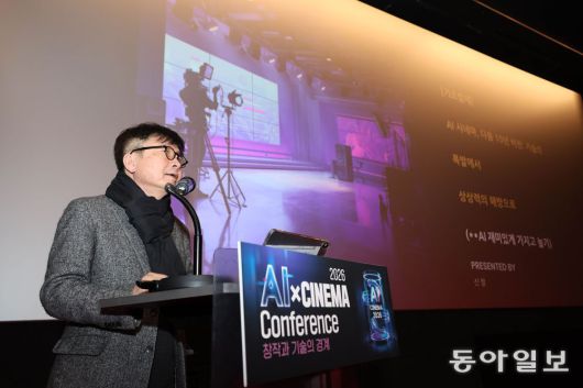 13일 서울 중구 서울영화센터 지하 1층 상영관 1관에서 열린 ‘2026 AI 시네마 콘퍼런스’에서 기조연설자로 나선 신철 집행위원장은 할리우드 거장 캐머런 감독을 예로 들며 거대 자본과 기술을 전제로 했던 영화 제작 환경이 AI로 빠르게 바뀌고 있음을 설명했다. 소수의 대형 제작자만 가능했던 상상력이 개인 창작자에게도 열리고 있다는 뜻이었다.