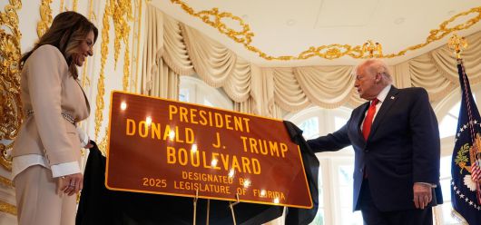 도널드 트럼프 미국 대통령의 사저인 플로리다주 팜비치의 마러라고 리조트 인근 도로의 이름이 ‘도널드 J 트럼프 불러바드’로 바뀌었다. 팜비치 국제공항에서 마러라고 리조트까지 이어지는 4마일(약 6.4km) 구간으로 트럼프 대통령이 자주 이용하는 도로다. 원래 ‘서던(Southern·남쪽) 불러바드’의 일부였지만 최근 주 의회의 개명 법안 통과, 론 디샌티스 플로리다 주지사의 서명 등을 거쳐 이름이 바뀌었다.