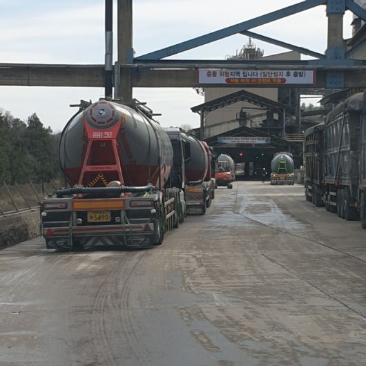 쌍용C&E 강원 영월공장 시멘트 출하장 앞. |
