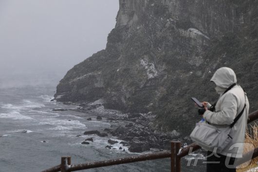 지난 11일 오후 서귀포시 성산일출봉에 눈보라가 치고 있다. 2026.1.11/뉴스1 ⓒ News1 오미란 기자 |