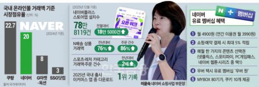 업계 관계자는 “그동안 이커머스시장에선 ‘쿠팡을 대체할 곳은 없다’는 인식이 강했지만, 이번 사태를 계기로 그 전제가 깨지는 분위기가 만들어지고 있다”며 “네이버는 기술·트래픽·멤버십을 모두 갖춘 만큼 올해 이커머스시장 재편 가능성이 커지고 있다”고 했다.