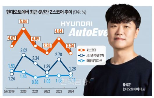 숫자만 놓고 보면 ‘안정성’에서 흠을 찾기 어렵다. 한국금융신문이 인공지능(AI) 데이터 플랫폼 딥서치를 통해 확인한 현대오토에버 알트만 Z-스코어는 ▲2019년 4.07 ▲2020년 5.84 ▲2021년 4.09 ▲2022년 3.36 ▲2023년 4.84 ▲2024년 3.34로 등락을 보였다.