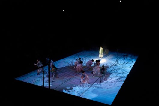 무대 바닥 전체에 깔린 LED 화면은 장면 전환과 감정 증폭을 위한 핵심 장치다. 첫 장면과 마지막 장면의 배경인 눈보라 치는 지리산부터 제주, 사이판, 하얼빈 등 장소의 특징을 효율적으로 구현했다. 신문기사, 태극기, 사진 등을 투사해 주요 사건을 부연하기도 한다. 특히 제주 도민들이 희생될 때 바닥에서 피어오르는 붉은 동백꽃이나, 눈 쌓인 지리산에서 여옥과 대치가 쓰러질 때 번져나가는 핏자국은 비극적 미장센을 완성한다. 대치의 품에서 여옥이 “그저 함께 있는 거, 그게 참 어렵네요”라며 숨을 거두는 장면에서 관객들의 슬픔은 정점에 치닫는다.