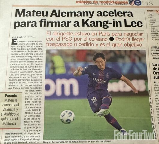 리그 경기가 한창 진행 중인 주말에 특정 선수의 이적설이 1면을 차지하는 일은 결코 흔치 않다. 이는 이번 이강인-아틀레티코 이적설을 현지 언론에서도 상당히 비중 있게 다루고 있으며, 현실성 있는 이야기로 받아들여진다는 뜻이기도 하다.