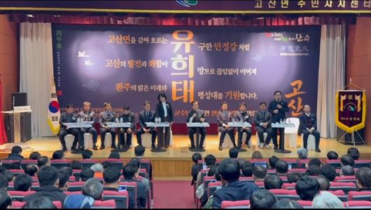 이어 15일 진행된 고산면 연초방문에서도 행사장 백드롭 대형 현수막에 현 단체장의 이름을 대문짝만하게 써놓고 삼행시를 소개하는 황당한 상황이 발생해 200명의 참석자들을 어리둥절하게 만들었다.