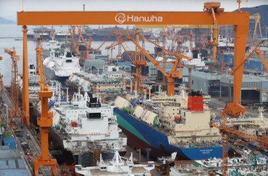 경남 거제시 한화오션 거제사업장에 대형 크레인과 건조 중인 선박이 보이고 있다./사진=뉴스1 |