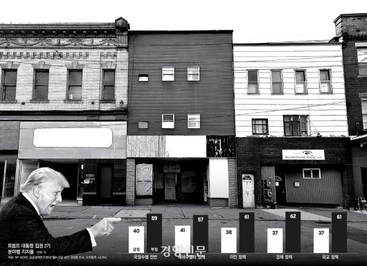 지난 10일 주유소 앞에서 만난 데이브는 트럼프 대통령 취임 후 지난 1년 동안 이 지역의 경제 상황을 어떻게 평가하느냐는 질문에 “솔직히 말하면 여전히 좋지 않지만, 그래도 조금씩 나아지고 있다”고 말했다. 지난해 여러 공장들이 문을 닫지 않았느냐고 묻자 “불법 체류자들을 너무 많이 고용했던 그 공장들을 말하는 것이냐”고 반문했다.