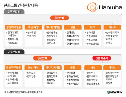 한화그룹 인적분할 내용 [그래픽=김아랑 미술기자] |