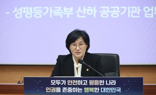 원민경 성평등가족부 장관이 14일 오후 정부서울청사에서 열린 성평등가족부 산하 공공기관 업무보고에서 모두발언을 하고 있다. 성평등가족부 제공 |