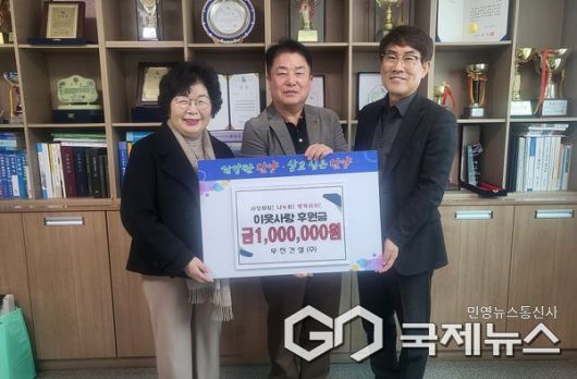 (단양=국제뉴스) 김상민 기자 = 무진건설(대표 김태호)은 지난 16일 충북 단양군 가곡면 지역사회보장협의체에 후원금 100만 원을 기탁했다.