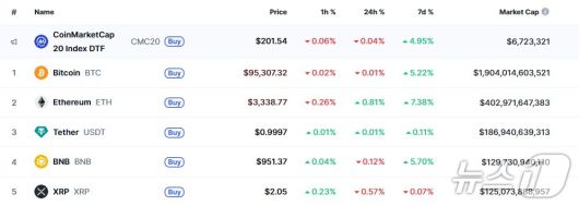 이 시각 현재 주요 암호화폐 시황 - 코인마켓캡 갈무리 |