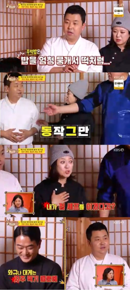18일 방송된 KBS 2TV '사장님 귀는 당나귀 귀'에서는 정호영이 김숙, 양준혁을 상대로 요리대결을 펼치는 모습이 전파를 탔다.