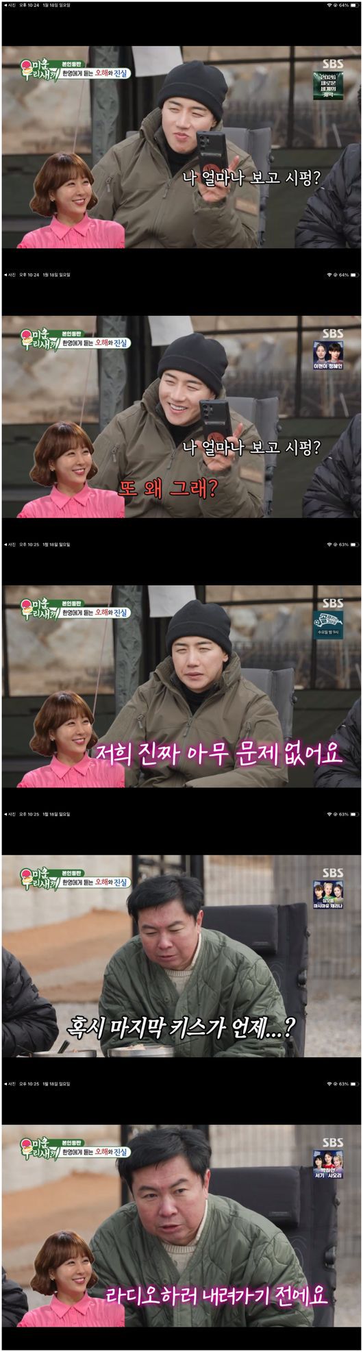임원희는 “스킨십을 안 한다고 하던데. 이런 것까지 왜 기사가 났냐”라며 물었다. 박군은 “아기 때문에 한영이 2년 가까이 병원을 다녔다. 엄청 힘들어했다. 그런데 해 줄 수 있는 게 없다. 한영이 예민해졌다. 원래 그게 아니어도 엄청 예민해서 제가 자다가 몸부림을 치면 잠에서 깬다. 그걸 말했더니 스킨십리스라고 기사가 났다. 요즘은 집에 가도 포옹을 해준다”라고 말했다.