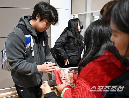 19일 오전 SSG 랜더스 선수들이 인천공항 제 2터미널을 통해 1차 캠프지 미국 플로리다로 출국했다. 팬들에게 사인을 해주고 있는 최정. 인천공항=송정헌 기자songs@sportschosun.com/2026.01.19/ |