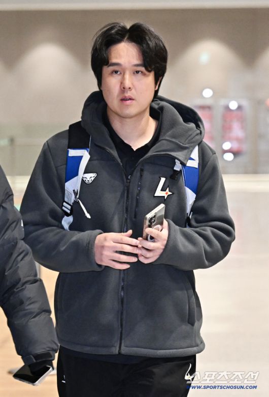 19일 오전 SSG 랜더스 선수들이 인천공항 제2터미널을 통해 1차 캠프지 미국 플로리다로 출국했다. 출국을 준비하고 있는 최정. 인천공항=송정헌 기자songs@sportschosun.com/2026.01.19/ |