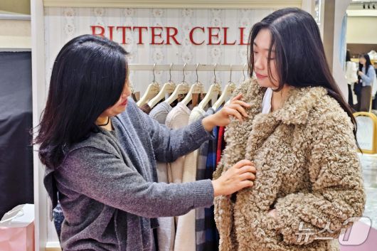 신세계백화점 센텀시티를 방문한 고객들이 비터셀즈 의상을 착용해 보고 있다.(신세계 센텀시티 제공. 재판매 및 DB 금지) |