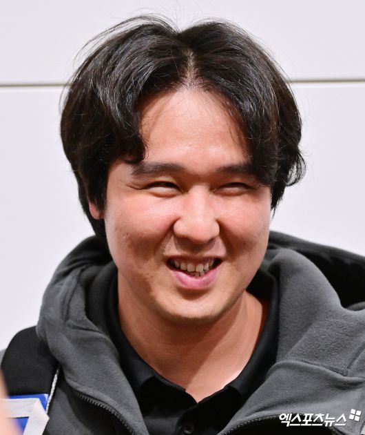 (엑스포츠뉴스 인천공항, 김한준 기자) 2026시즌 스프링캠프 1차 훈련 나서는 SSG 선발대가 19일 오전 인천국제공항을 통해 미국 플로리다로 출국했다. 출국 전 인터뷰하는 최정.김한준 기자 kowel@xportsnews.com