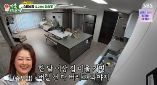 어머니는 이승우에게 "재활용 쓰레기는 다 버리고 와야 한다", "한 달 이상 집을 비울 거면 버릴 건 다 버려야 한다", "세탁기랑 건조기도 열어두고 와야 한다" 등 걱정 섞인 잔소리를 건넸다. 이에 이승우는 투덜대면서도 어머니의 말대로 하나하나 실천하며 웃음을 자아냈다.