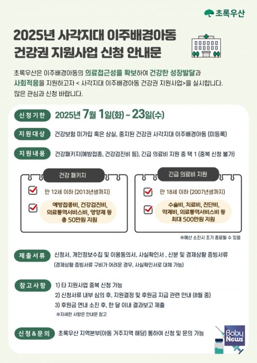 초록우산이 2025년 수행한 사각지대 이주배경아동 건강권 지원사업 포스터. ⓒ초록우산 |