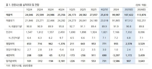 유 연구원은 한온시스템이 지난해 4분기 매출액 2조6000억 원, 영업이익 771억 원을 기록했을 것으로 봤다. 매출액은 전년 대비 2.1% 증가한 수준이며, 영업이익은 흑자 전환을 전망했다.