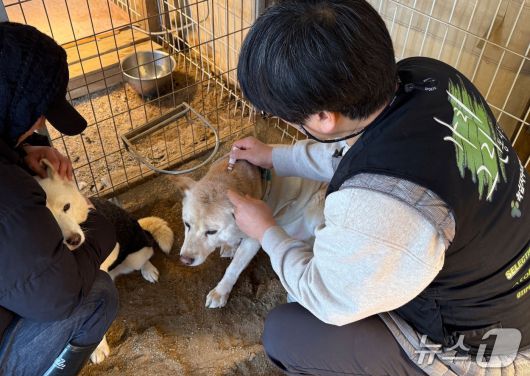 녹십자수의약품은 수의사와 함께 동물보호소에 심장사상충약 데피니트를 기부했다(녹십자수의약품 제공). ⓒ 뉴스1 |