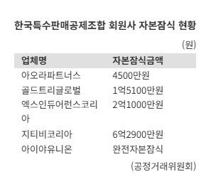 재무 구조가 불안정한 부실 회원사 문제도 특판조합이 다단계 피해를 방치한다는 지적으로 이어지고 있다. 공정거래위원회 다단계판매사업자 정보공개 자료에 따르면 현재 특판조합 회원사 71곳 중 1곳은 완전자본잠식, 4곳은 부분자본잠식 상태다. 자본잠식은 기업의 누적 적자가 커지면서 자본금마저 잠식돼 유동성이 최악인 상태다. 상장 기업의 경우 50% 이상 부분자본잠식이 2년 연속 발생하거나 완전자본잠식이 발생하면 상장폐지된다.