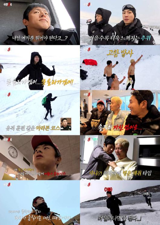 출발점에 도착한 극한크루는 대자연의 압도적인 풍경에 감탄하는 동시에, 북극 마라톤에 대한 부담감을 온몸으로 체감했다. 실제 레이스를 대비해 아이젠과 방한 장비를 착용하고 빙하 위 테스트 러닝에 나선 세 사람은 뼛속까지 파고드는 북극의 추위와 로프를 잡지 않으면 오를 수 없는 급경사 구간, 10km에 달하는 빙하 구간 등을 체험하며 점점 말수를 잃어갔다.