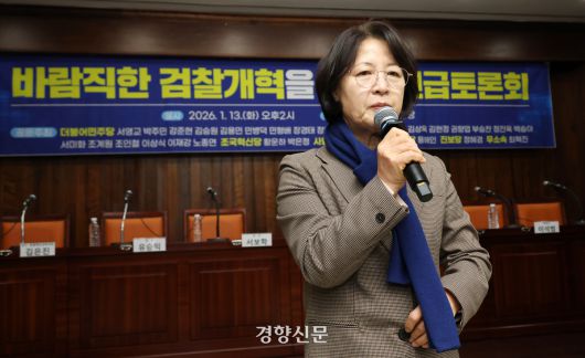 추미애 국회 법제사법위원장이 지난 13일 국회에서 열린 바람직한 검찰개혁을 위한 긴급토론회에서 발언하고 있다. 박민규 선임기자 |