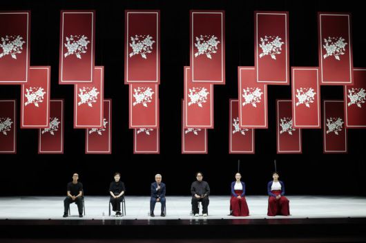 서울시무용단 '일무(佾舞)' 안무가 김성훈(왼쪽부터), 정혜진, 세종문화회관 안호상 사장, 연출 정구호, 무용수 김경애 최태헌이 21일 서울 종로구 세종문화회관에서 서울시무용단 '일무' 시연을 마치고 기자간담회를 하고 있다. 뉴시스 |