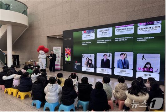 지난 16일 부산시청 어린이집 원생 25명과 교사 등 30여 명이 참여해 '기부자 명예의 전당'에 대한 설명을 듣고 있다.(부산시 제공. 재판매 및 DB금지) |