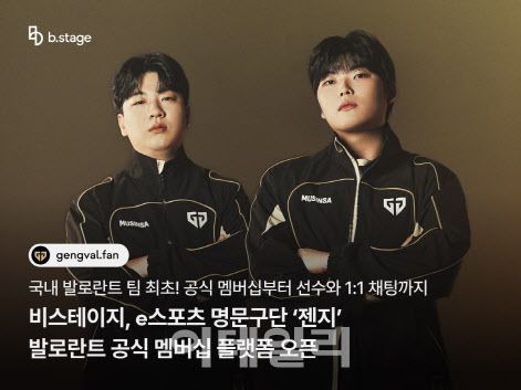 [이데일리 윤정훈 기자]글로벌 팬덤 플랫폼 ‘비스테이지(b.stage)’가 글로벌 e스포츠 기업 ‘젠지 이스포츠(Gen.G Esports, 이하 젠지)’의 발로란트 팀 공식 멤버십 플랫폼을 구축했다고 19일 밝혔다.