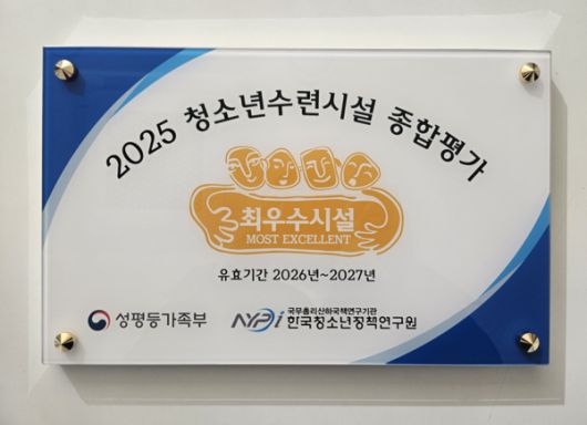 '청소년수련시설 종합평가'는 성평등가족부가 주관해 2년마다 전국 500여 개의 청소년수련시설을 대상으로 실시하는 정기 평가다. 시설 운영·관리 청소년 이용 및 프로그램 인사 및 조직 시설·안전 시설운영 발전 등 7개 분야 전반에 대해 전문가들의 엄격한 심사를 거친다.